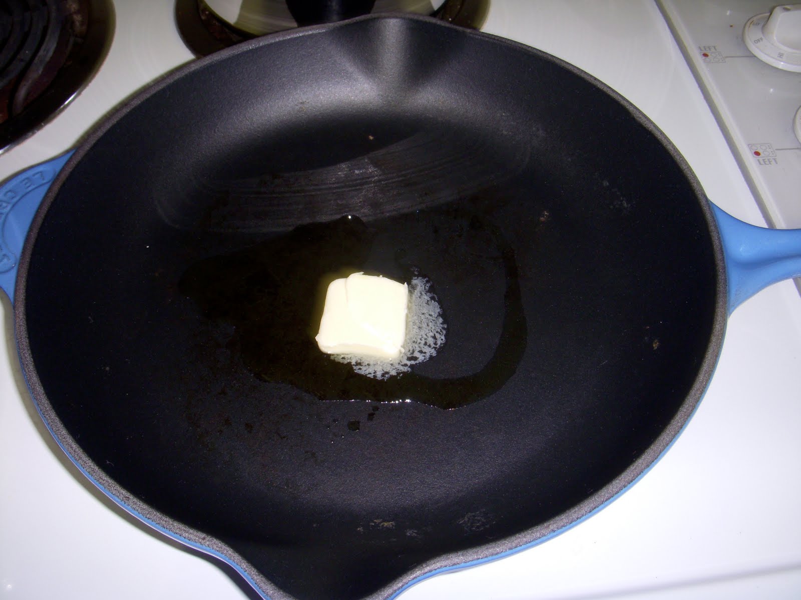 Melt butter and olive oil in oven-proof skillet