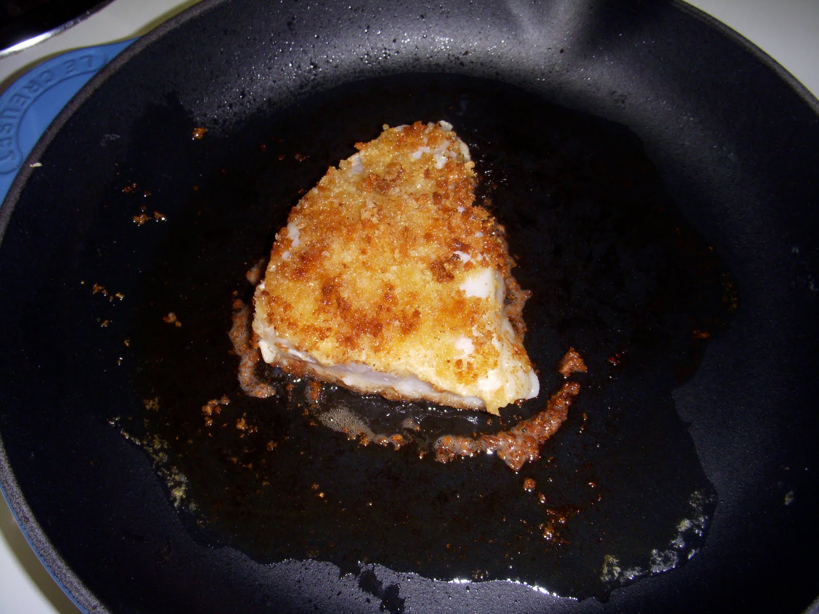 Place fish panko-side down in skillet and brown for 2 minutes on medium heat. Turn over fish and brown for another 2-3 minutes.