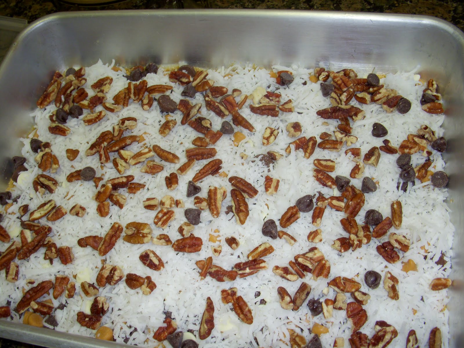 5. Sprinkle coconut and nuts over chips.