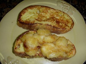 I have not had French Toast in forever, so I’ve been craving it lately. This recipe puts a twist on your typical french toast by adding a caramelized banana topping with tangy orange juice. The sauce was absolutely delicious, my only regret was that my bananas did not keep their perfect sliced shape. Besides the looks, this was perfect and I strongly recommend making this. I used ciabatta bread, but any egg, challah, or french bread will work. This recipe is from Williams Sonoma’s “Comfort Food” cookbook. Enjoy!
