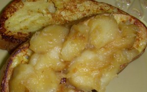 8. Serve the french toast piping hot, topped with spoonfuls of the caramelized bananas.