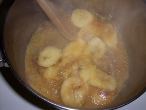 Cook over medium-high heat until bananas are brown. Add brown sugar and cook another minute. Then add orange juice and rum, if using, and cook for 1 minute.