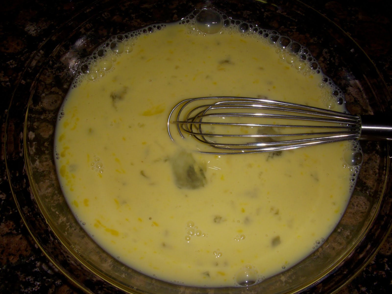 Whisk together eggs, half-and-half, sugar, vanilla, orange zest, and nutmeg.