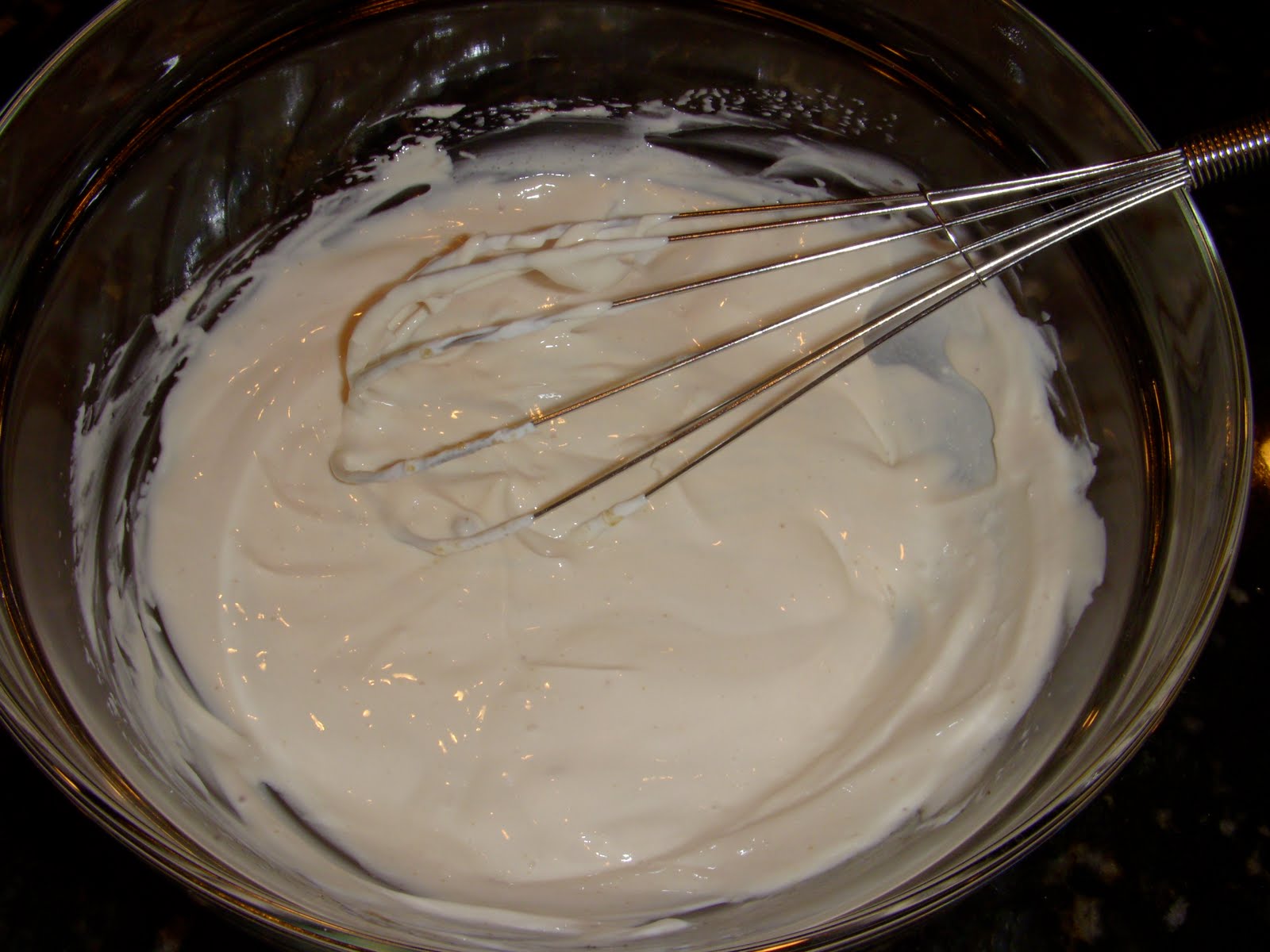 6. To prepare the sauce, whisk together the sour cream, brown sugar, 1 tablespoon bourbon, and vanilla until the brown sugar dissolves. Add more bourbon to taste, if desired.