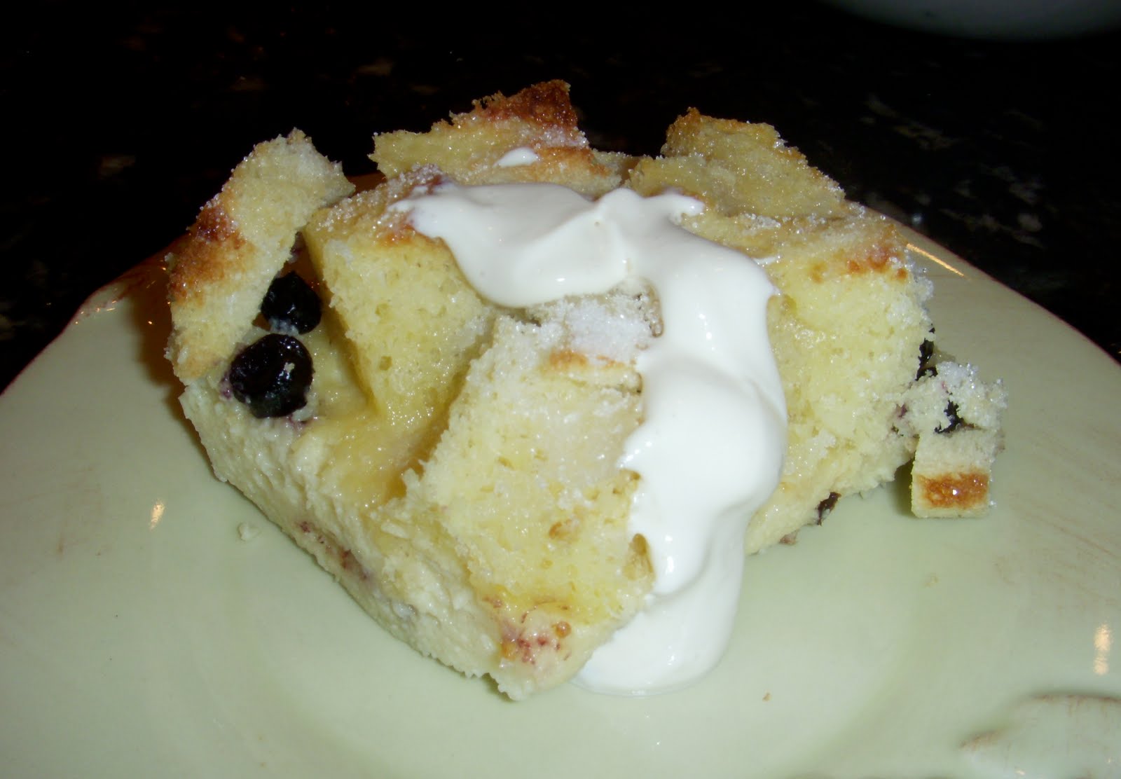 Blueberry Brioche Bread Pudding with Bourbon Sour Cream Sauce