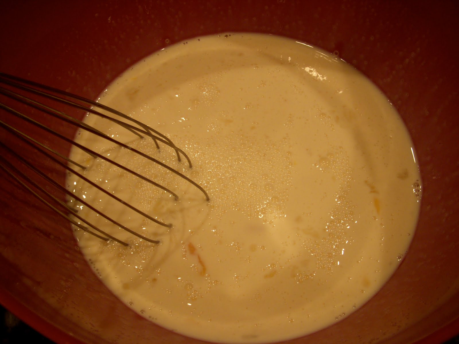 Whisk together the half-and-half, 9 tbsp sugar, eggs, and vanilla.