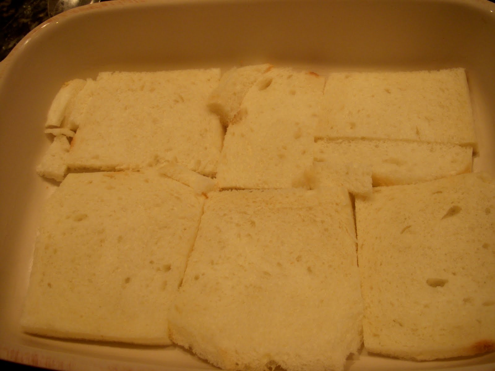 Brush 9 x 13 inch pan with melted butter. Line the bottom of the pan with a layer of sliced brioche.