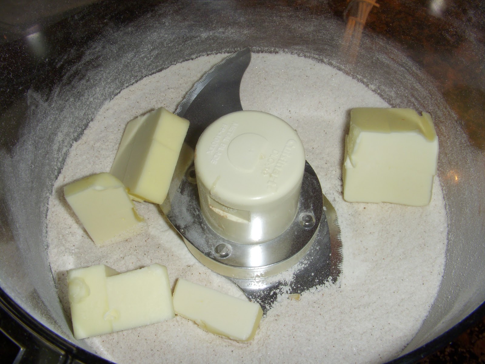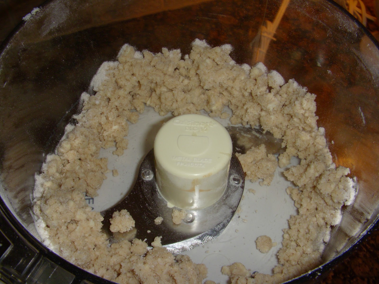 To make the crumble, pulse together the flour, sugar, cinnamon, allspice, and diced butter.