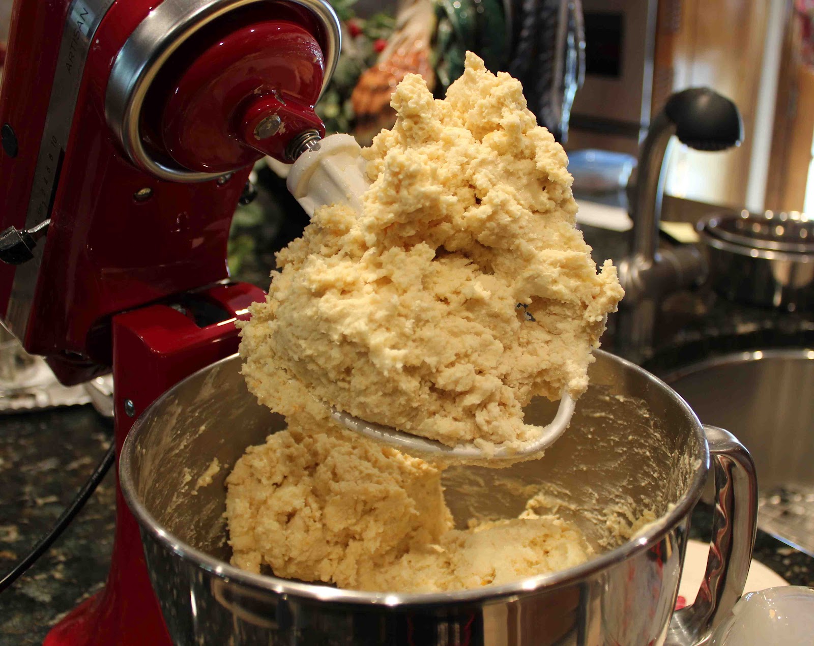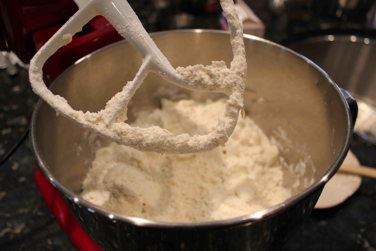 3. Combine the eggs and heavy cream and, with the mixer on low speed, slowly pour into the flour and butter mixture. Mix until just blended. The dough will look lumpy!