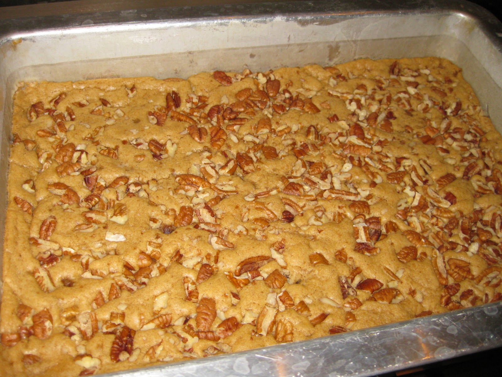 - Pat the mixture evenly into the prepared pan. Bake for 20 minutes or until the bars begin to turn golden at the edges. Cool for 5 minutes, then cut into bars.