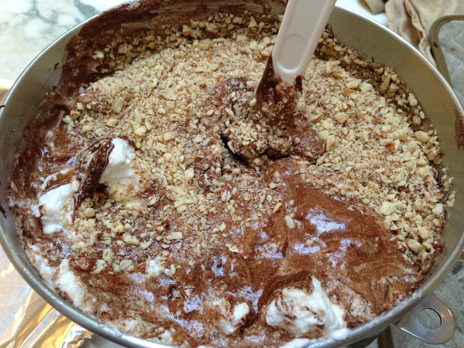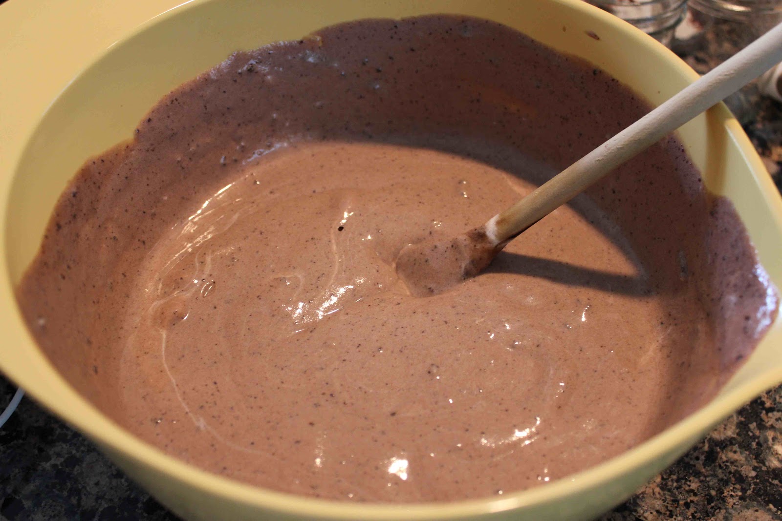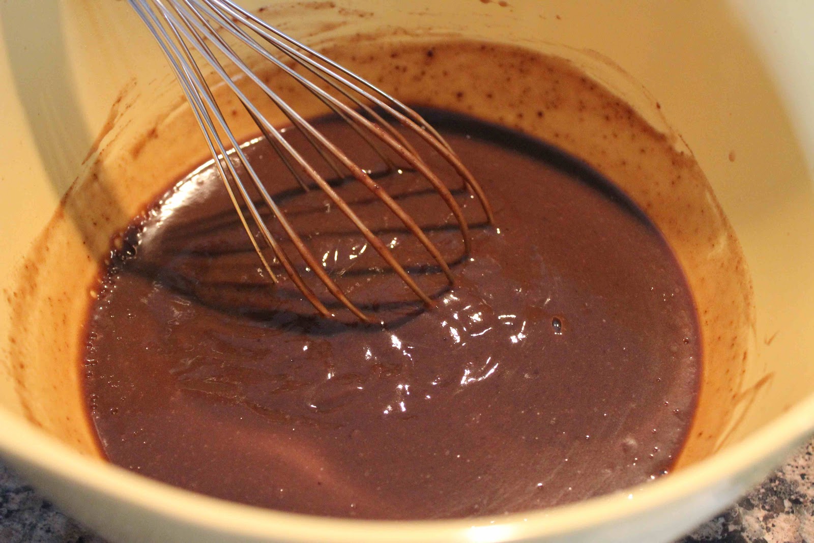 3. Stir in boiling water (the batter will be thin, don’t worry, this is right).