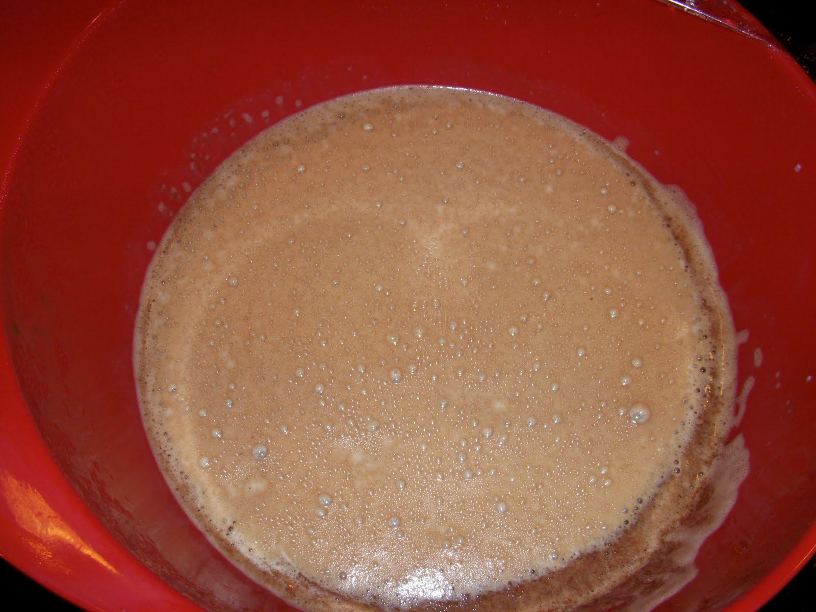 Cream together the brown sugar and butter until light and fluffy. Add the eggs one at a time, until incorporated.