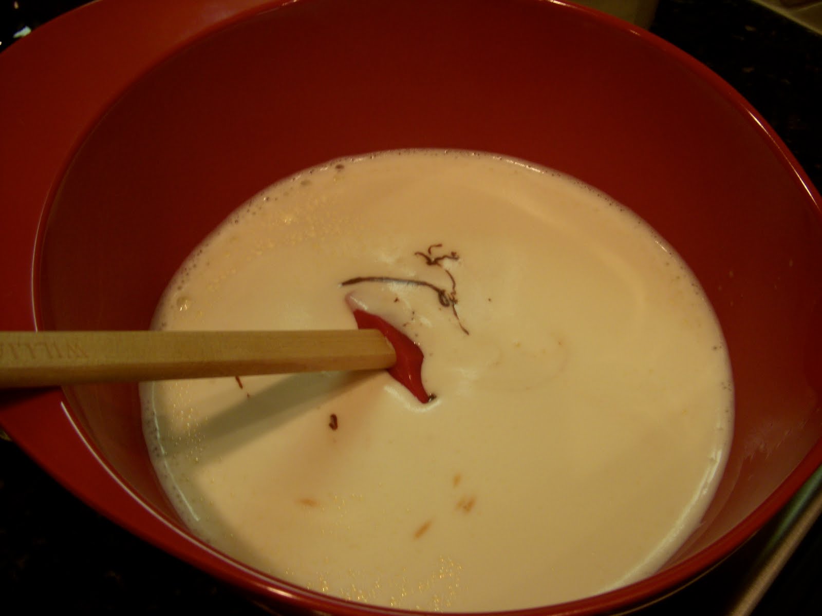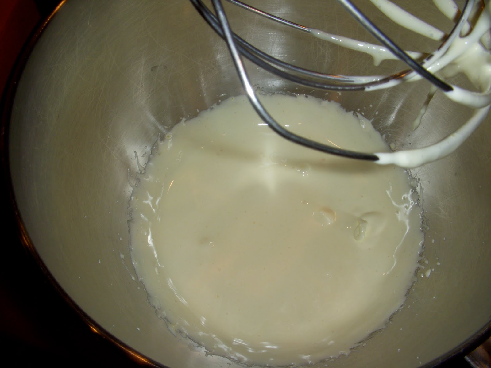 Beat in the melted chocolate, stopping the mixer to scrape down the sides before beating again.