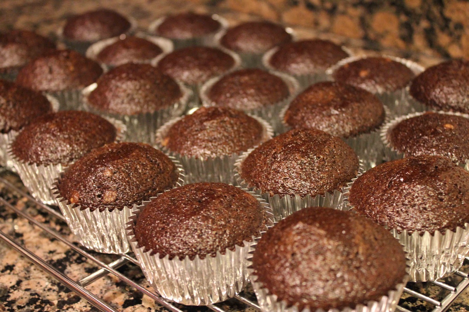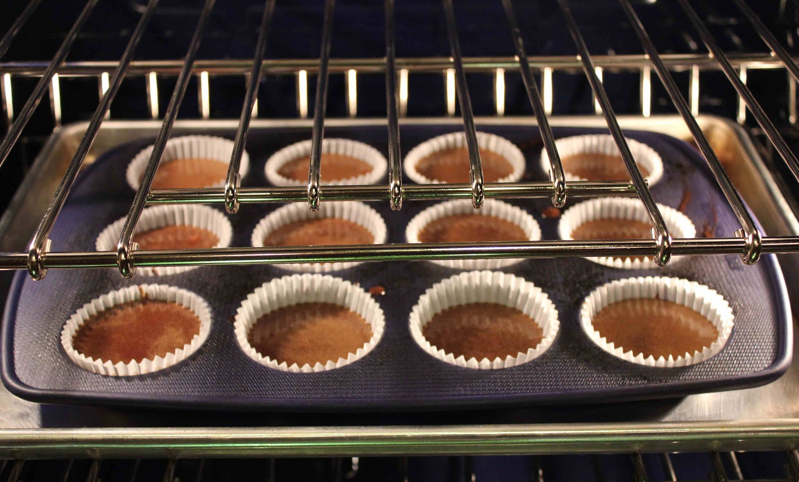 - Spoon the batter into muffin cups just to the top. Bake about 20 minutes, until the muffins are firm to the touch or a toothpick inserted into the middle comes out clean. Cool the muffins in the pan for 5 minutes, then invert them onto racks to cool for 30 minutes before frosting.