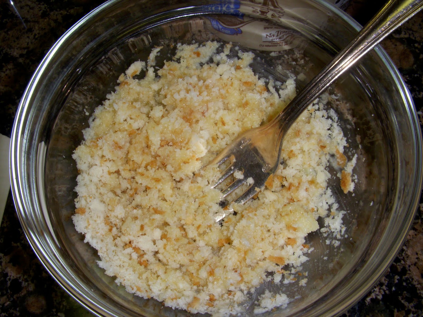8. In a small bowl, melt the remaining 4 tablespoons butter in the microwave. Add the Parmesan cheese and breadcrumbs and toss well. Sprinkle over the top of the baking dish.