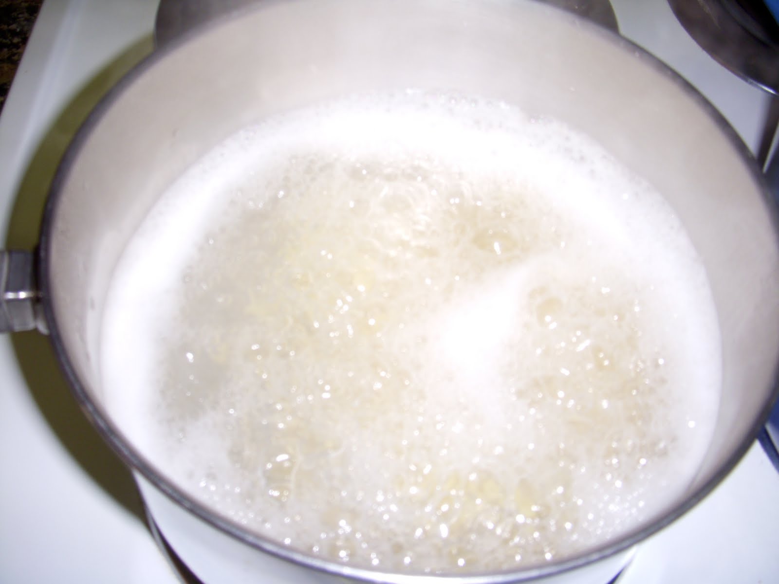 2. Cook macaroni according to package directions. Drain in a colander and set aside in the cooking pan.