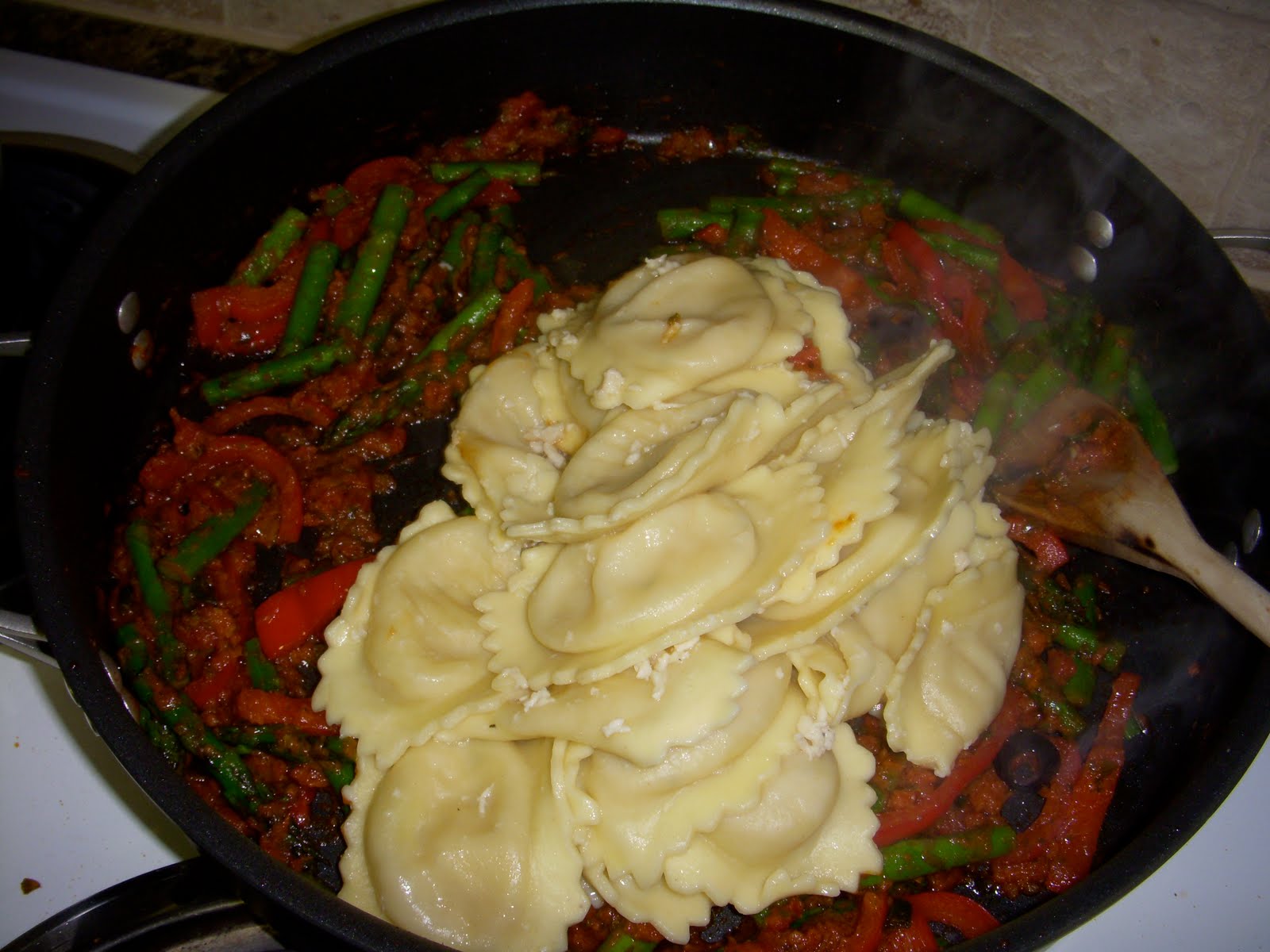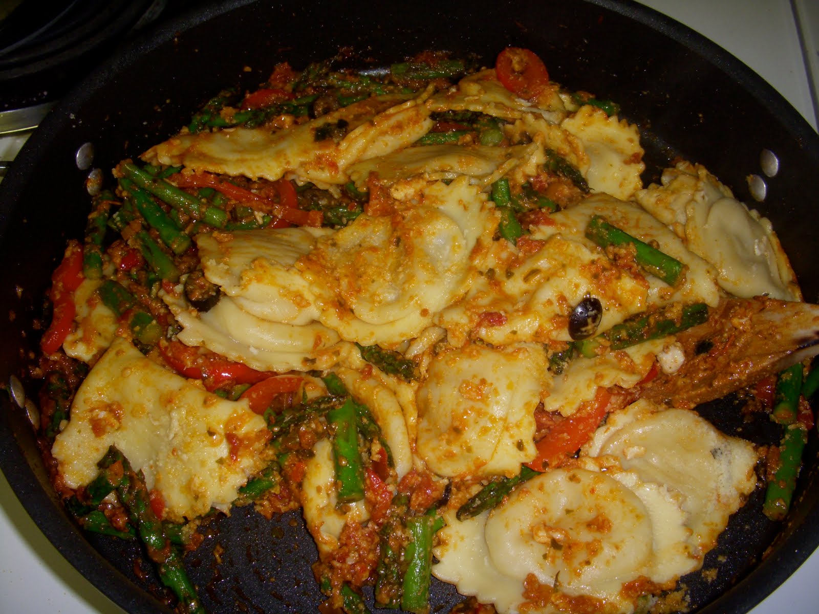 Toss sauce, with hot, cooked pasta.