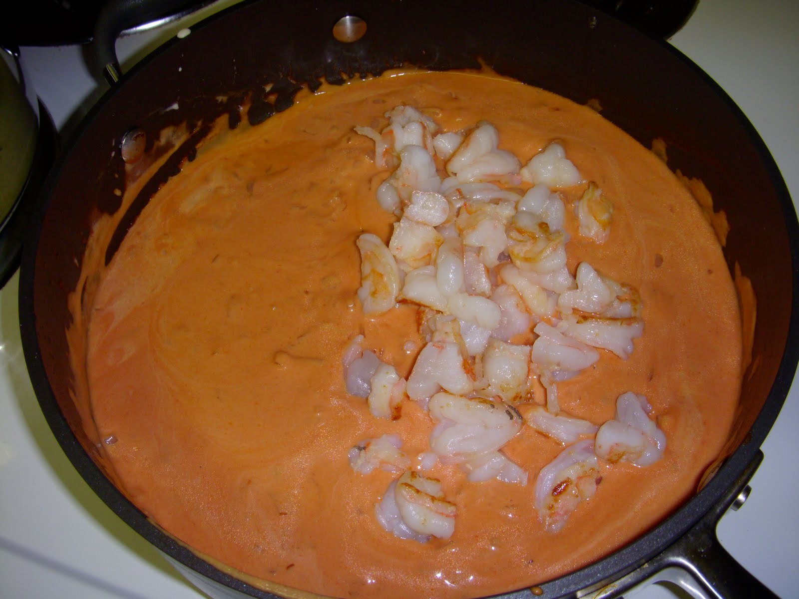 Meanwhile, melt butter in a medium saucepan. Add garlic; stir for one minute, and then stir in flour. Next, whisk in the milk, and cook for 6 minutes, stirring constantly until mixture thickens. Add Parmesan cheese, cream cheese, and salt, and whisk together until cheese melts.
