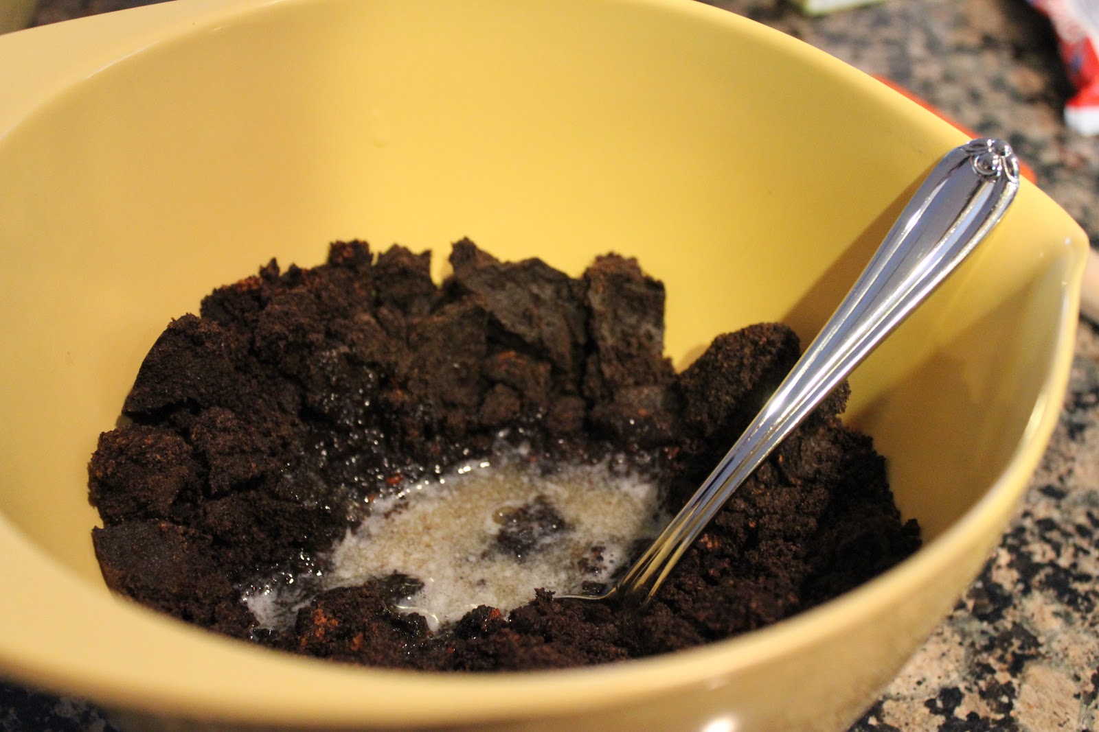 | Combine finely crushed OREOs with melted butter. |