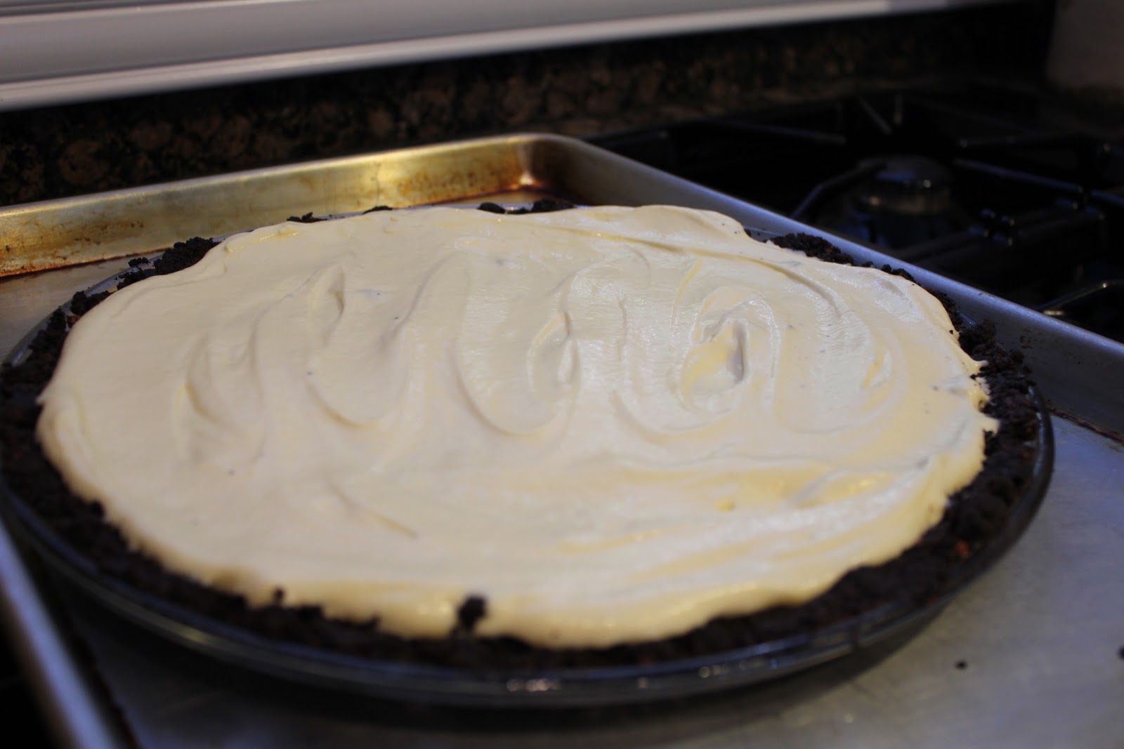 | Spread pudding mixture over cooled crust. |