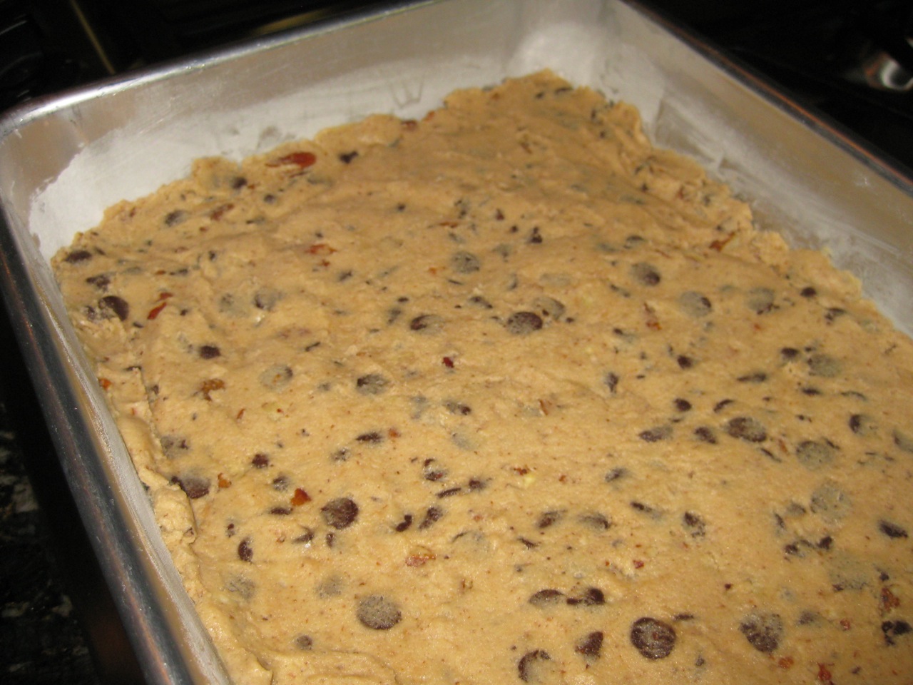 5. Scrape the batter into the prepared pan and bake for 35-40 minutes, or until a toothpick inserted in the center comes out clean.