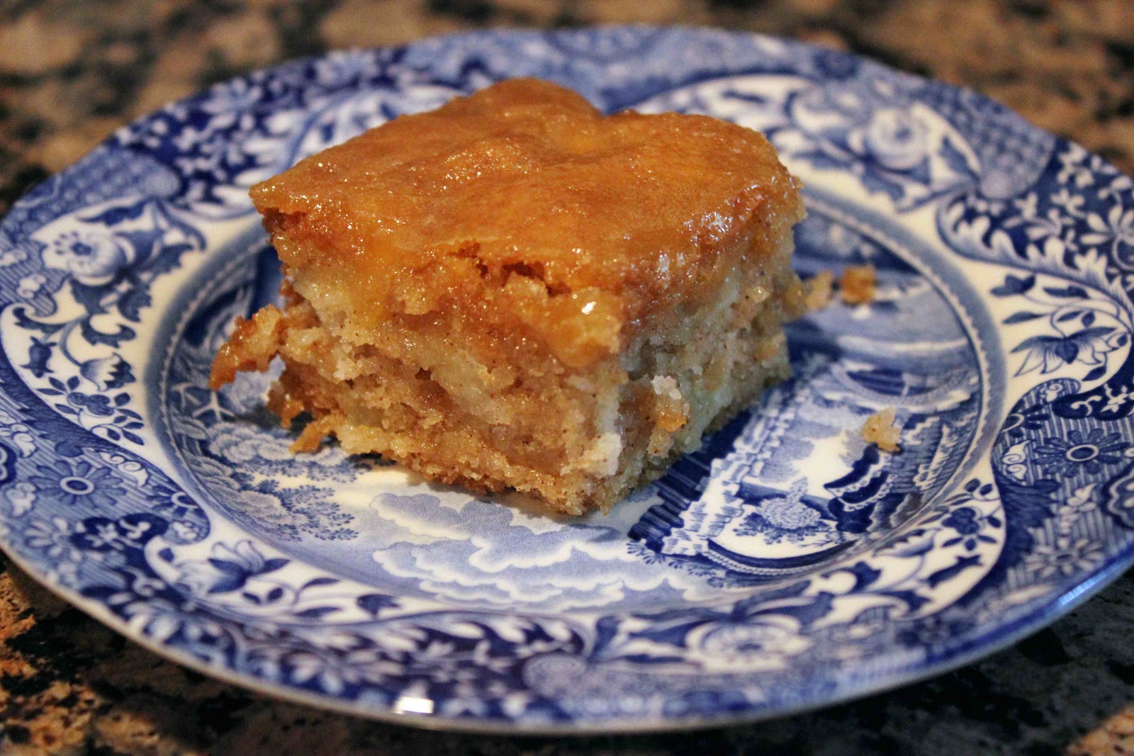 Lick the Bowl Good‘s new blog posting of Fresh Apple Cake with Brown Sugar Glaze. The cake was described as moist and buttery, despite there only being 3 tablespoons butter in the recipe. She said that the glaze settled in nicely as it slightly soaked into the cake and reminded her slightly of a caramel apple. I had to make it!