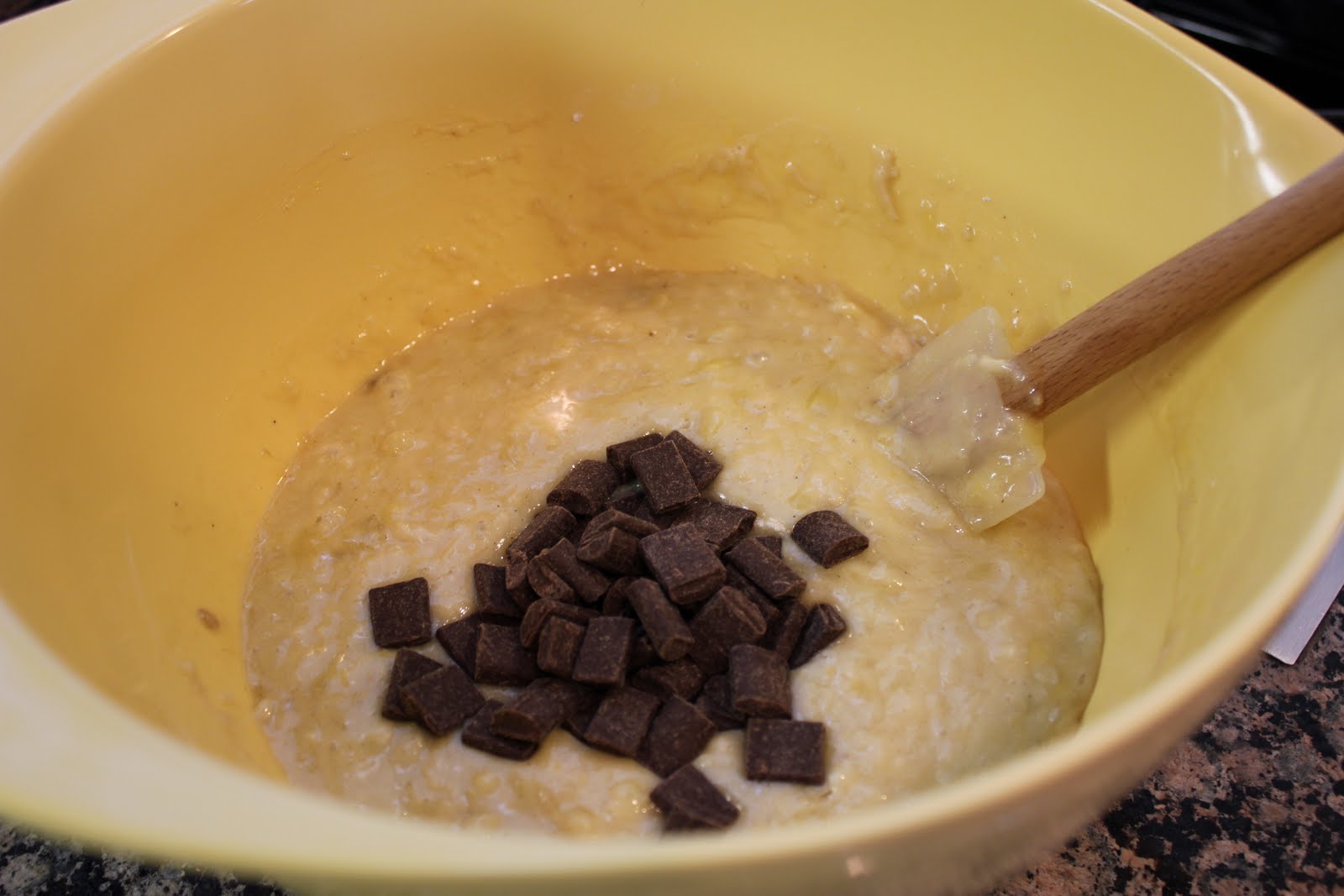 - Weigh or lightly spoon flour into dry measuring cups; level with a knife. Combine flour and next 5 ingredients (through salt) in a large bowl, stirring with a whisk. Make a well in center of mixture. Combine 1 cup water and next 4 ingredients (through egg) in a bowl, stirring well with a whisk. Stir in 1/4 cup chocolate chips. Add oil mixture to flour mixture, stirring just until moist.