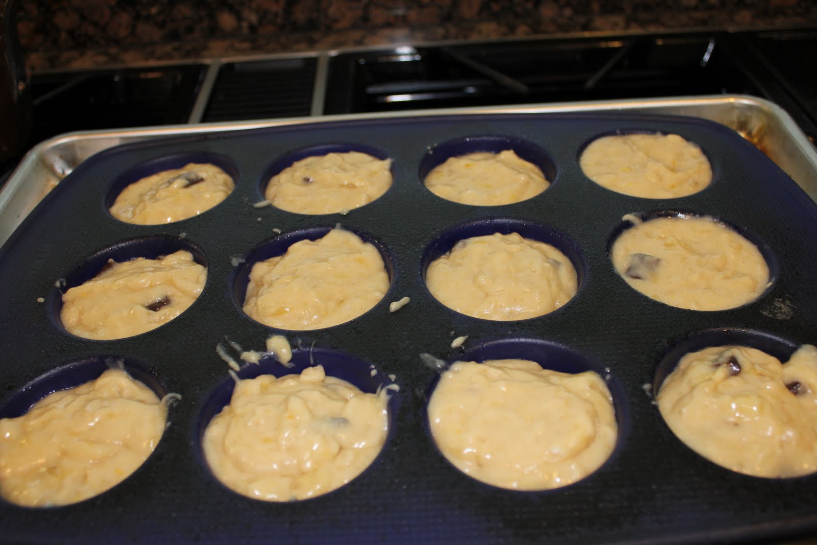 Pour the batter in 12 individual muffin liners and throw them in the oven.