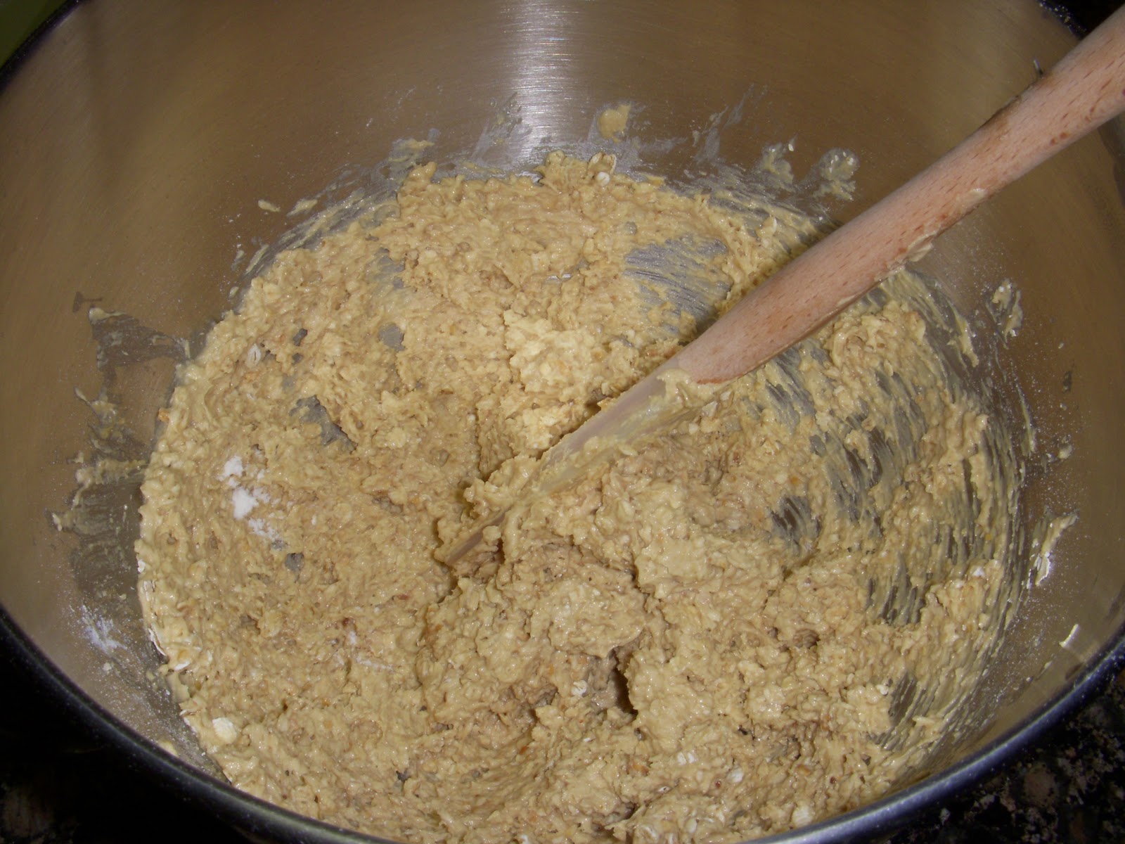 - Combine the oats, flour, baking powder, salt, flaxseeds, and walnuts in a large mixing bowl.
